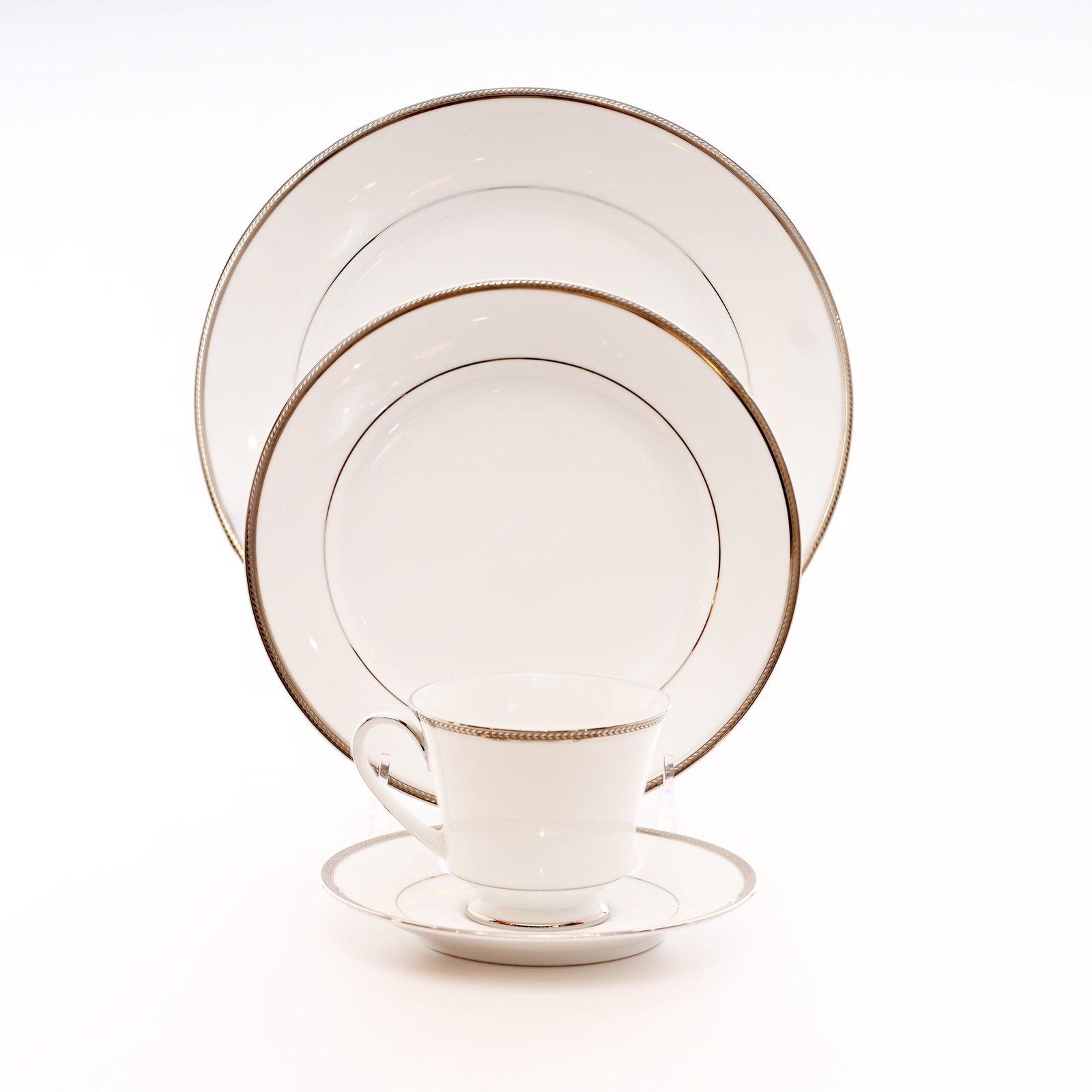 12 Dinner Plates , 12 Salad Plates ,12 soup plates, 12 Bread & Butter plates, 12 Fruit saucers, 12 Coffee Cups, 12 Coffee Saucers, 12 Tea Cups , 12 Tea Saucers, 6 Oval Platters, 2 Oval Vagetable Platters, 2 Gravy Boat + Tray , 4 (2) Covered Vagetables , 2 Tea pot + Cover, 2 Sugar bowl + Cover , 1 Creamer