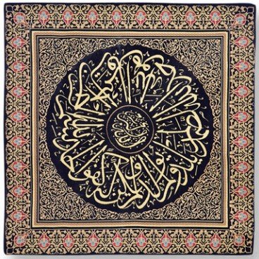 - خامة فاخرة ومتينة: مزيج من 72% بوليستر + 27% قطن + 1% خيوط معدنية (ميتاليك)، توفر ملمسًا ناعمًا وثابتًا مع لمعان ذهبي طبيعي يبرز تفاصيل الآية والإطار ويدوم طويلًا.